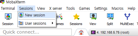 1) MobaXterm 메뉴의 Session -> New Session으로 들어갑니다.