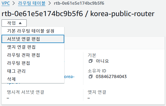 작업 -> 서브넷 연결 편집