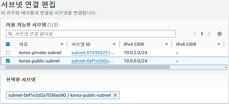 public subnet 선택후 저장