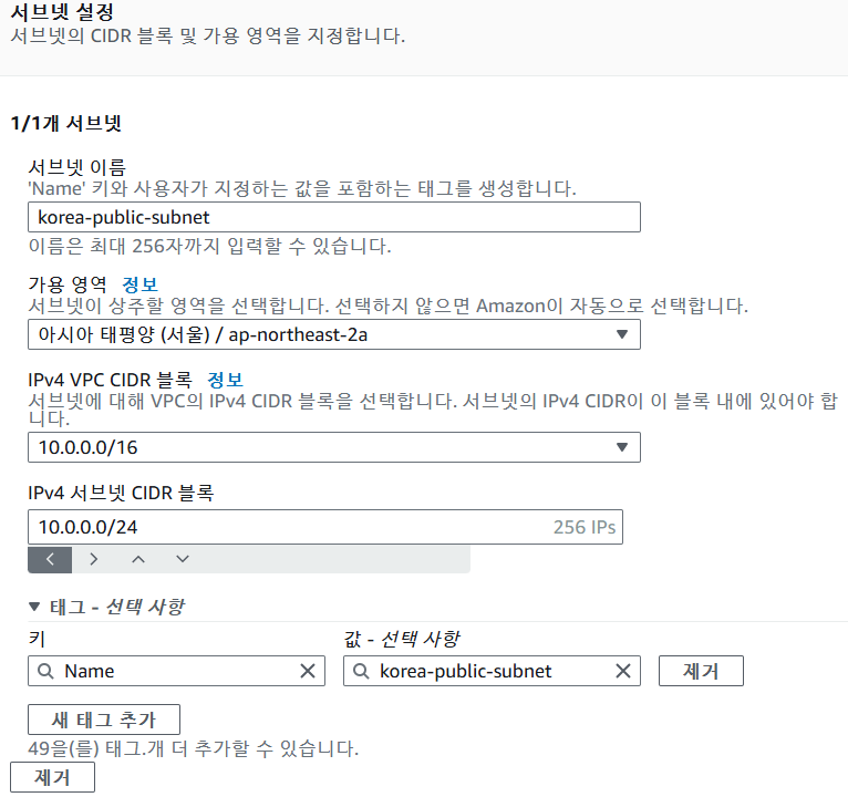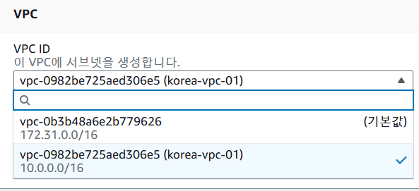 서브넷을 생성할 VPC 선택