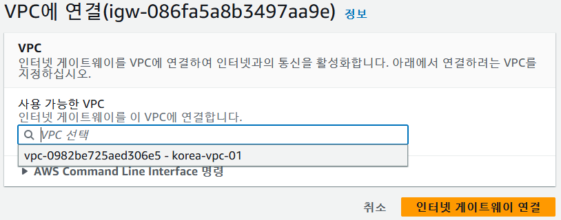 연결할 VPC 선택후 연결