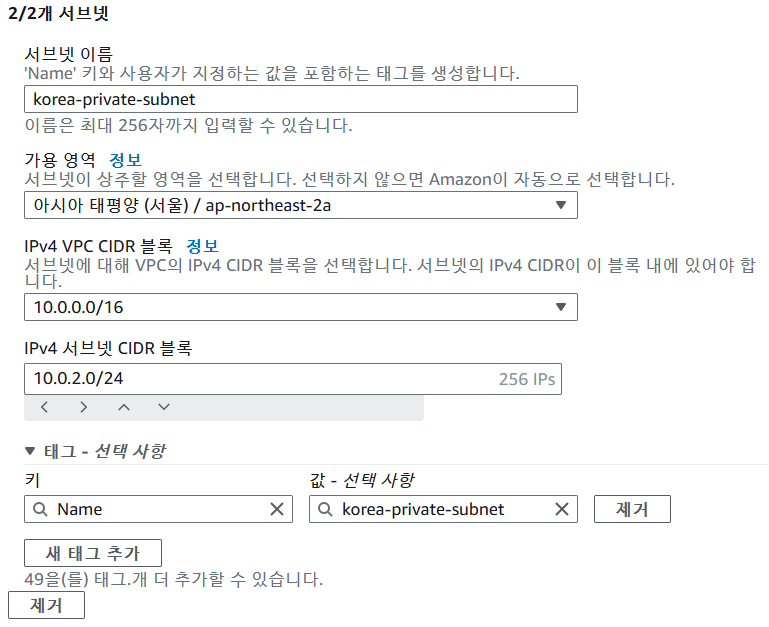두번째 서브넷 설정