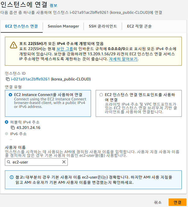 인스턴스에 원격으로 접속할 수 있습니다.