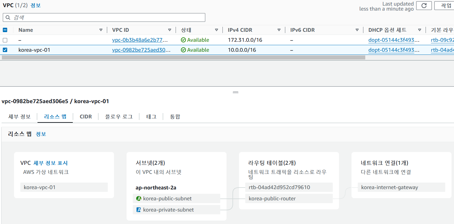 리소스 맵은 VPC의 설정 정보를 그래픽으로 표시해주어 한눈에 확인할 수 있습니다.
