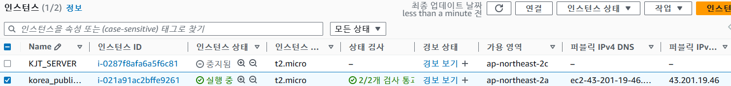 이제 인스턴스에서 새로고침을 하면 생성된 인스턴스가 표시되고