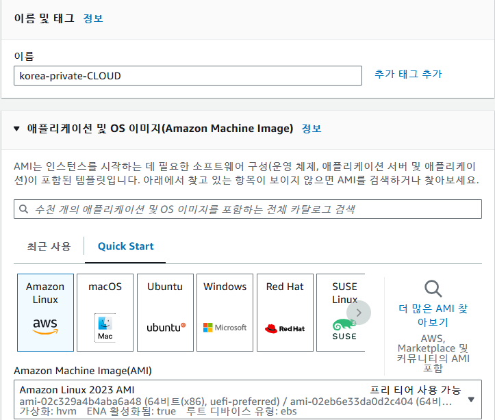 이름 생성 및 OS 선택(Amazon Linux)