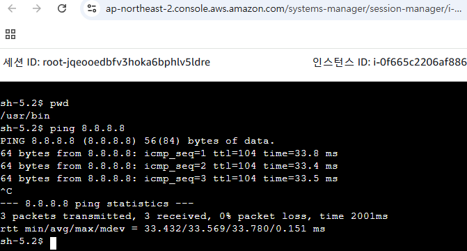 ※ 만일 대상 인스턴스가 아무것도 표시되지 않으면 private 인스턴스를 재시작 해봅시다.