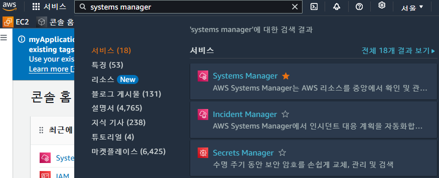 검색 -> systems manager
