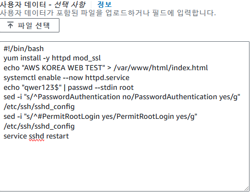 고급 세부 정보 -> 사용자 데이터에 public때와 마찬가지로 초기 명령어 입력