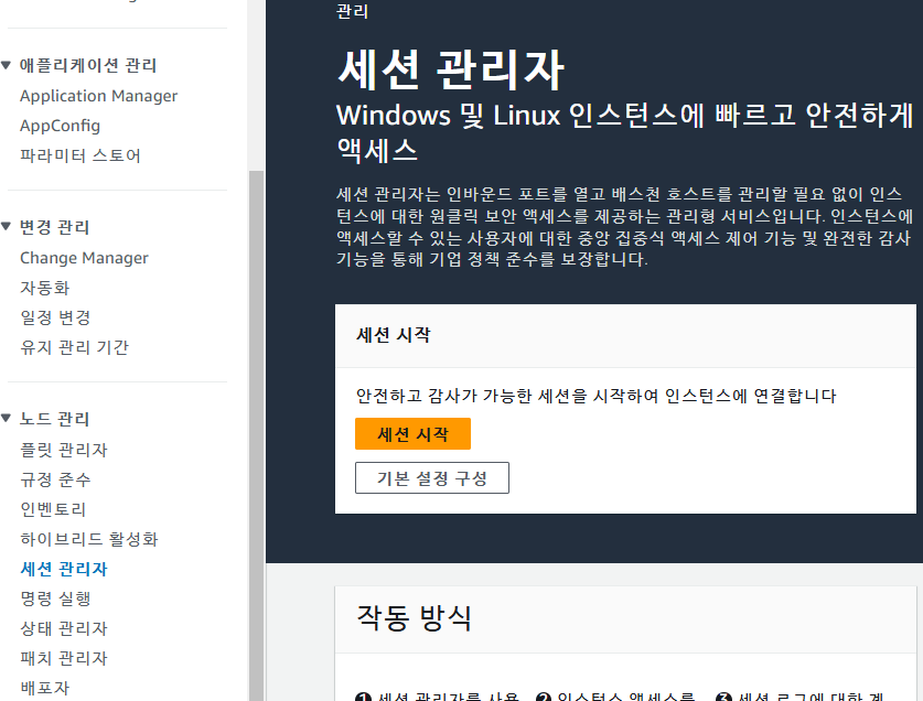 노드 관리 -> 세션 관리자 -> 세션 시작