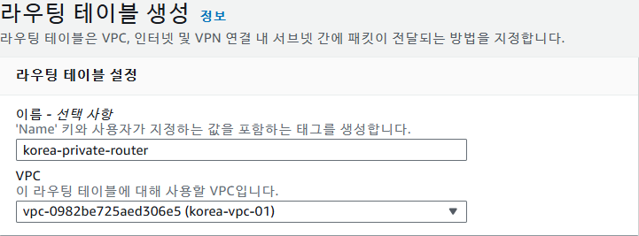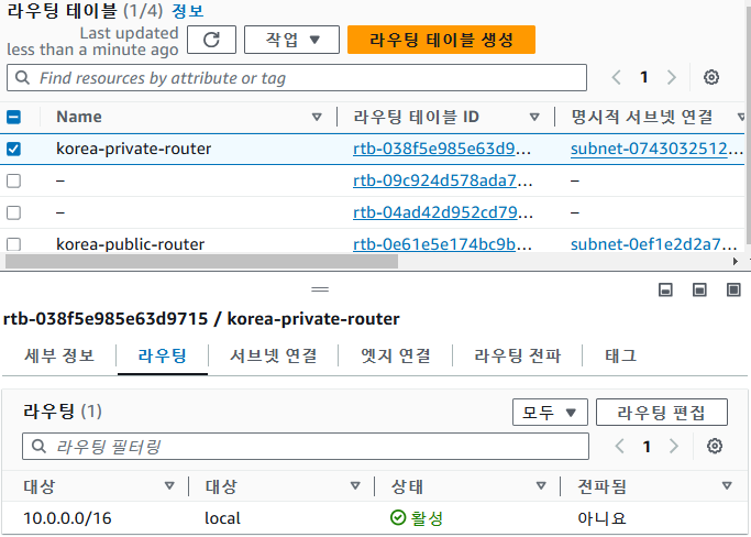 이후 라우팅 테이블 목록에서 생성된 private-router 선택