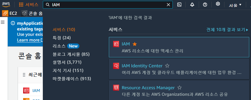 검색 -> IAM -> IAM 대시보드로 이동
