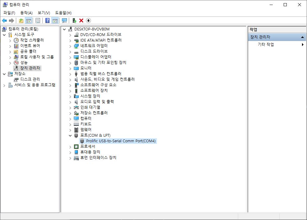장치 관리자에서 라우터 포트 번호 확인