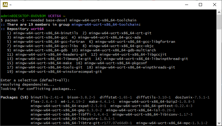 pacman -S --needed base-devel mingw-w64-ucrt-x86_64-toolchain