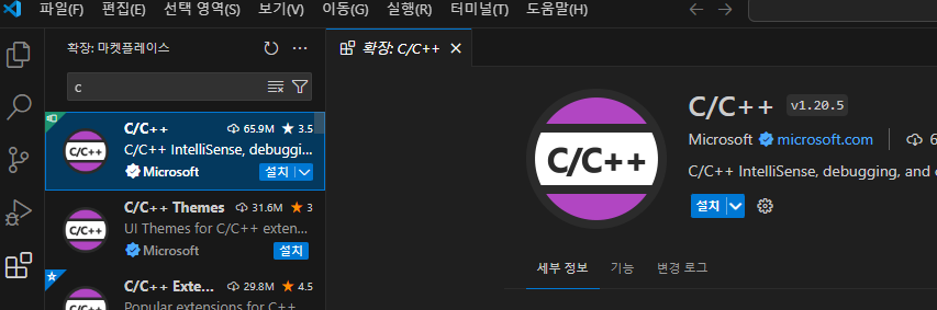 마찬가지로 Extensions에서 C/C++ Extension을 설치해줍니다.