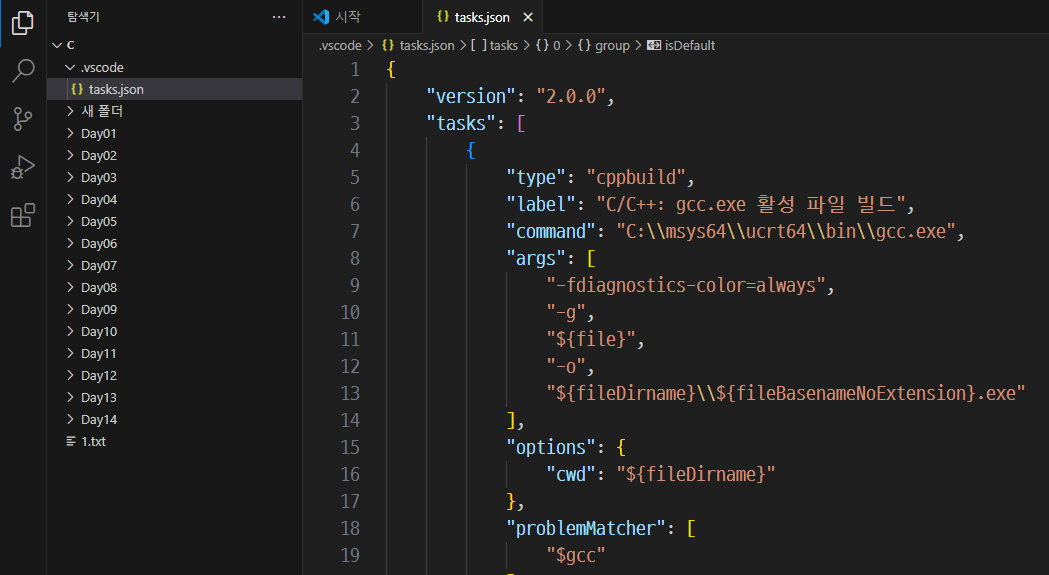 메뉴 -> 파일 -> 기본설정 -> 설정