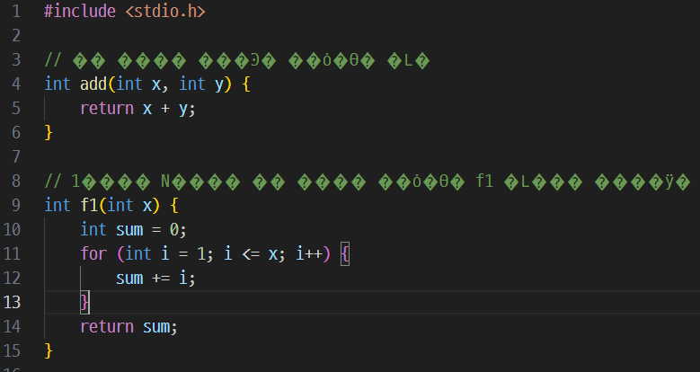 다른 프로그램에서 만들었던 소스파일의 글자가 다음과 같이 깨질 경우