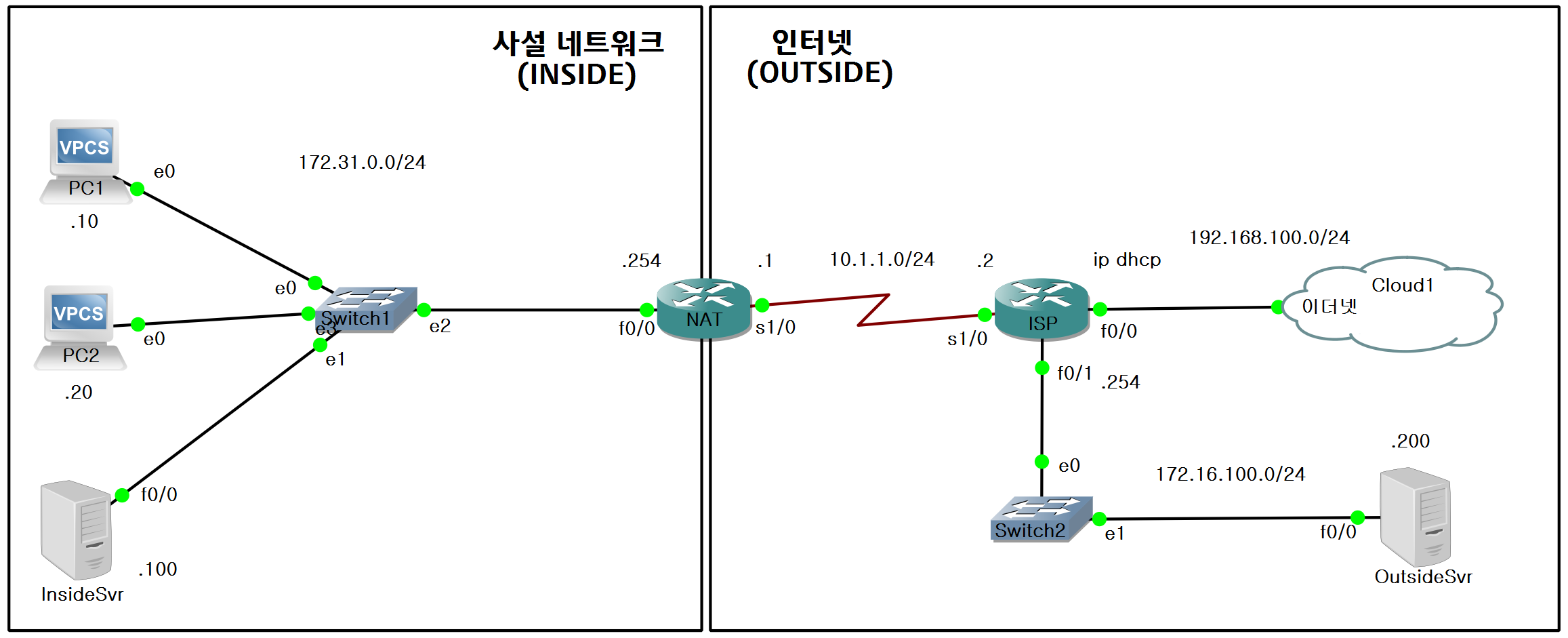 # IP를 3.3.3.1 - 3.3.3.2로 바꾸는 NAT 적용