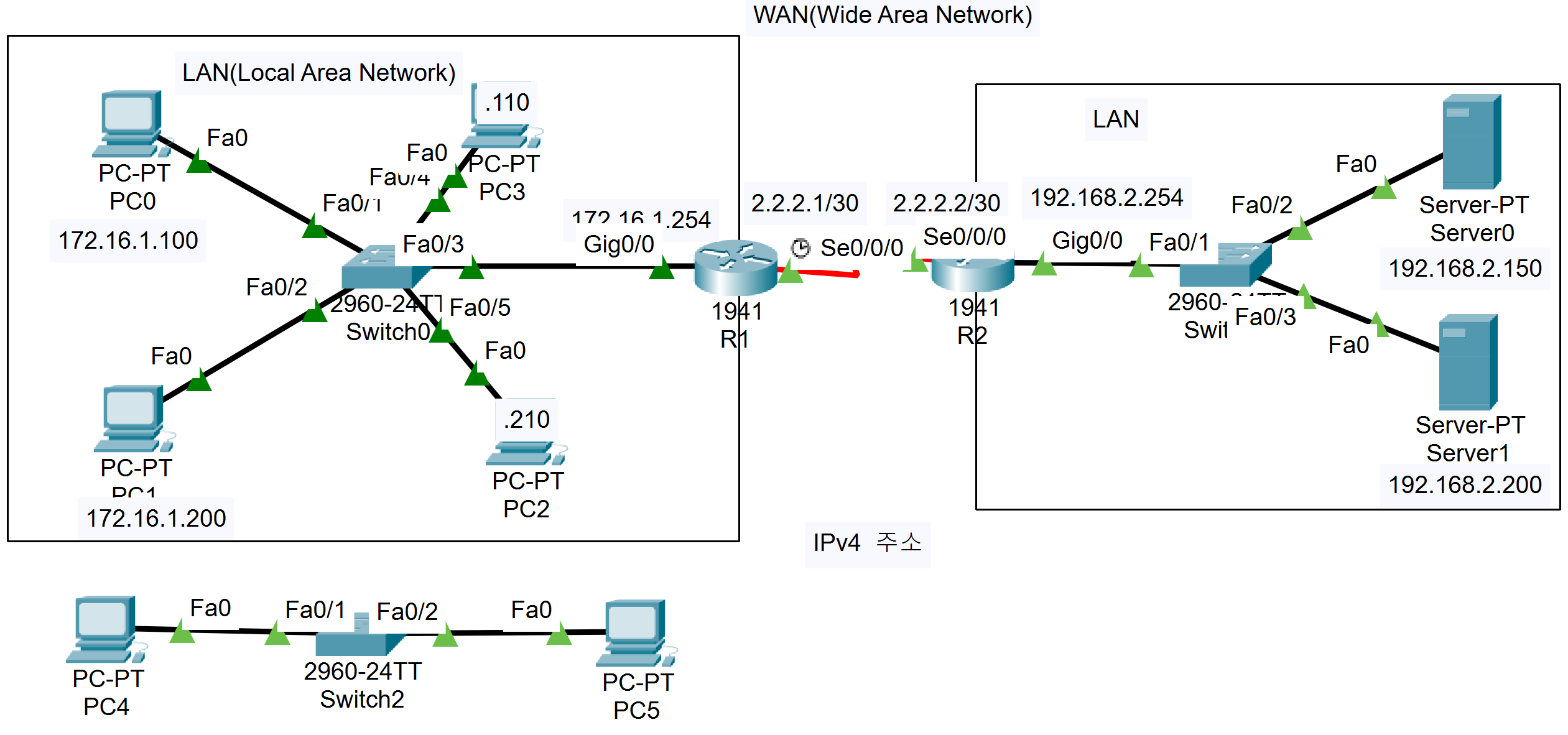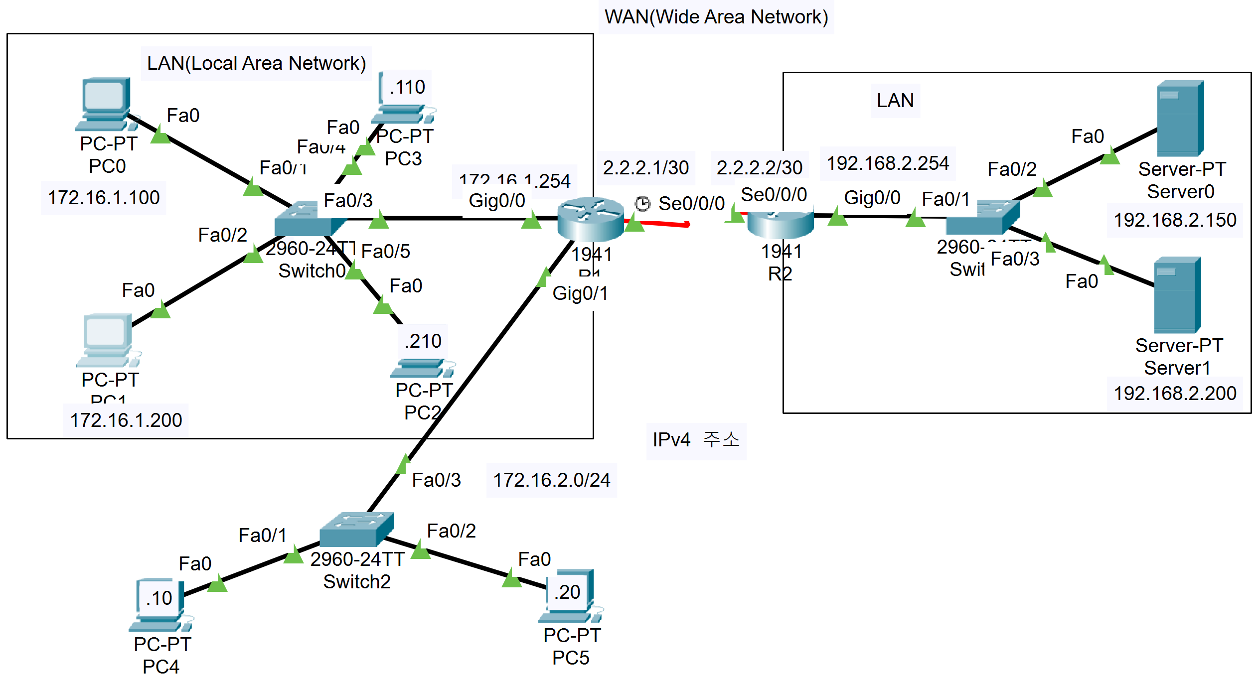 R1의 f0/0, s1/0, R2의 f0/0, s1/0중