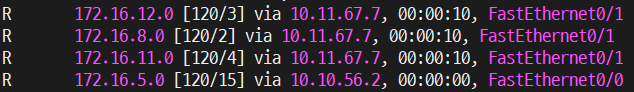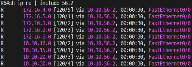 여기서 FastEthernet0/1 (10.10.56.2) 인터페이스로 연결된 네트워크만 정리하면