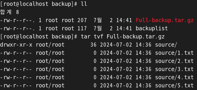backup폴더에 1차로 증분백업한 백업파일이 생성되고