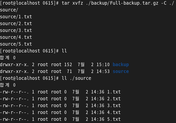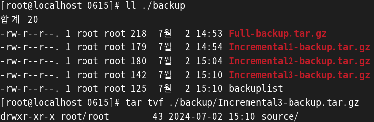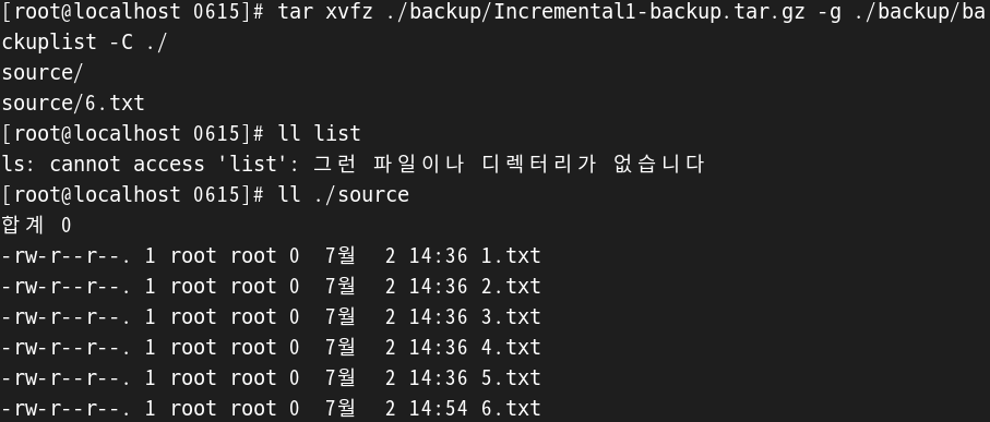 이제 증분백업을 위해 source 파일에 변동사항을 넣어준 후