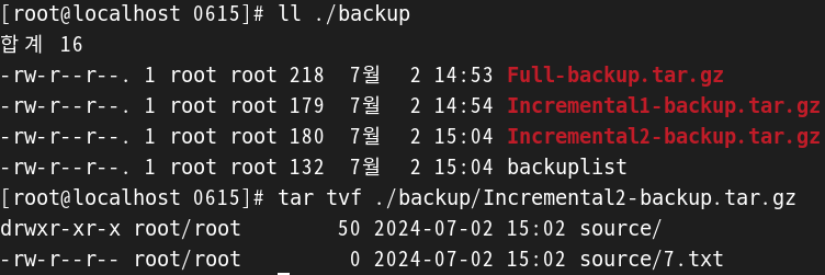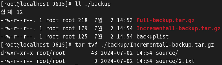 backup폴더에 2차로 증분백업한 백업파일이 생성되고