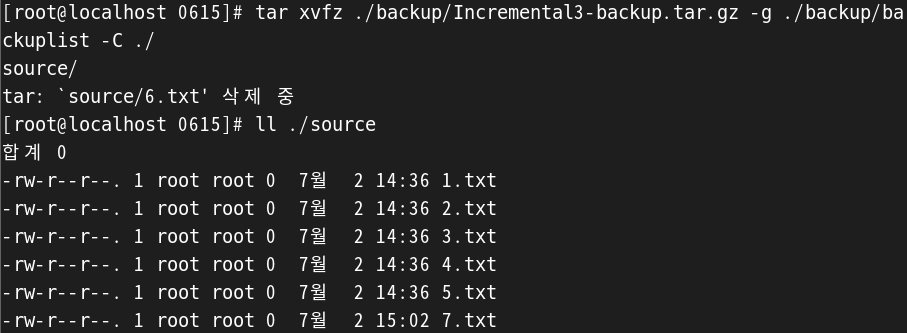 이번엔 6.txt를 삭제하고 백업해봅시다.