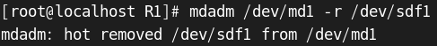 # md1 레이드의 sdf1 파티션이 장애가 발생했다고 선언