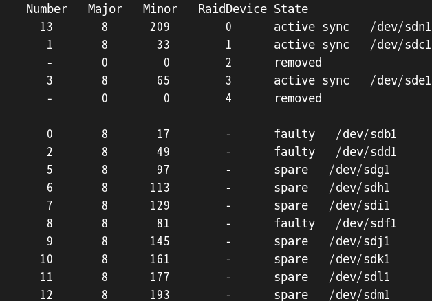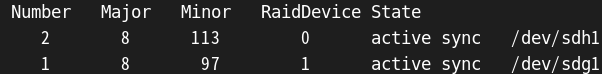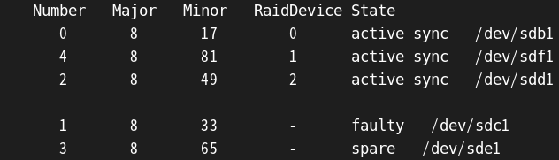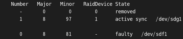 sdf1 파티션이 장애(faulty) 상태로 출력됩니다.