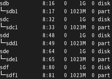 # device는 2개가 들어가며 해당 device 이름은 /dev/sdb1, /dev/sdc1