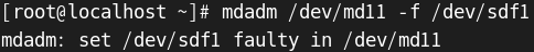 RAID1 하나를 장애선언 하는것이 불가능합니다.