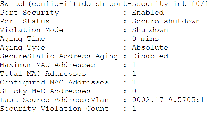 f0/1에 입력된 MAC주소를 바꾸지 않고 연결된 PC를 바꾸면