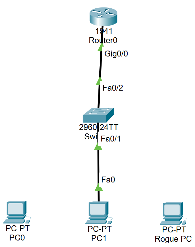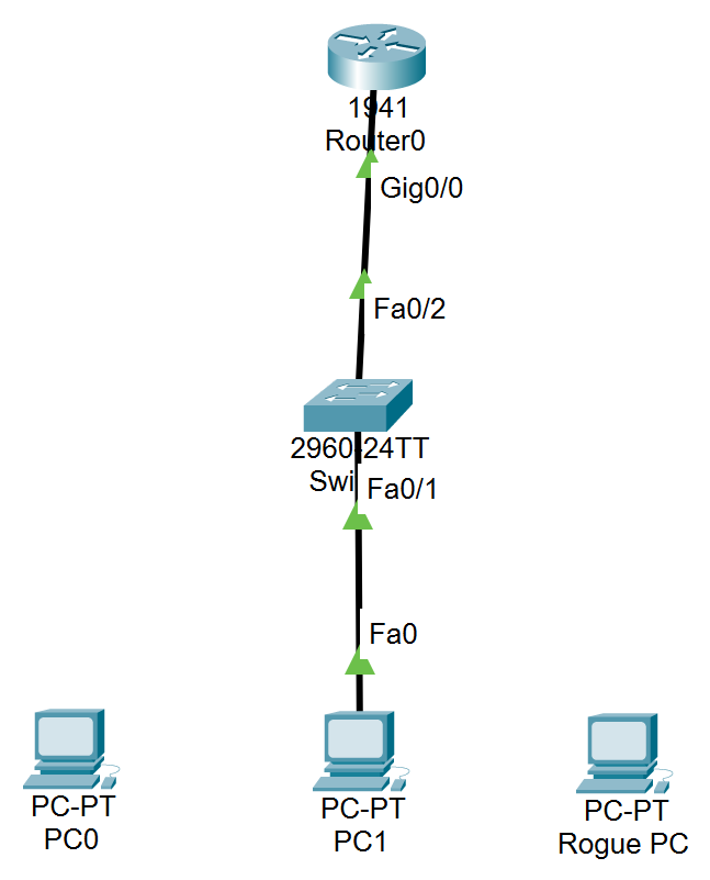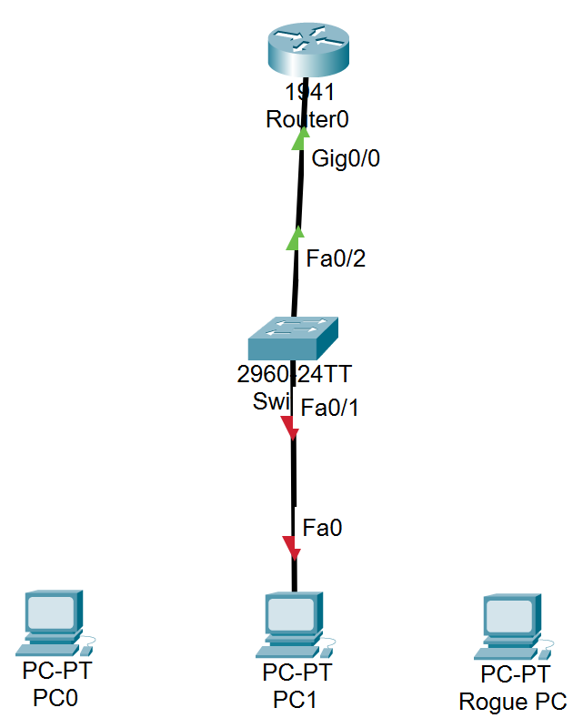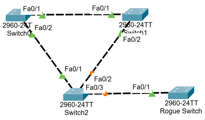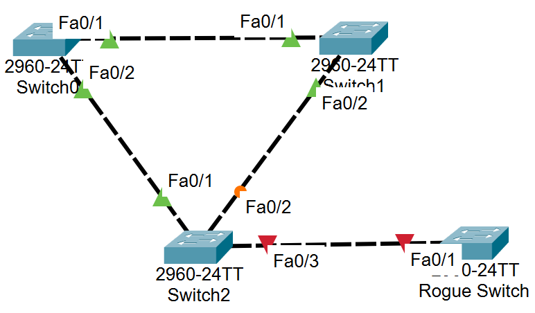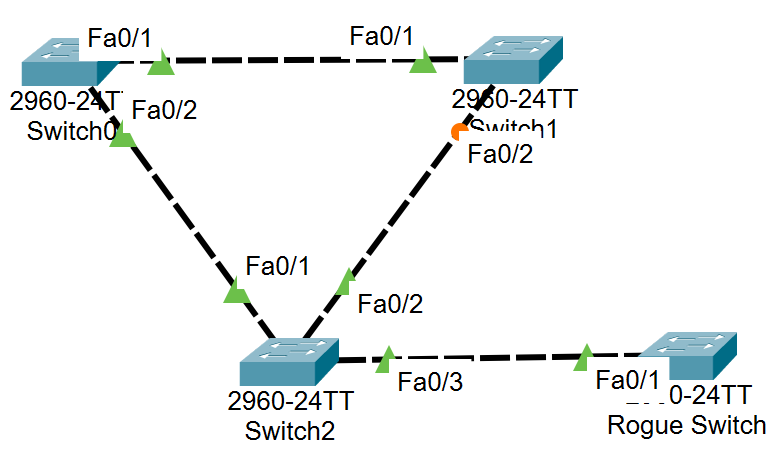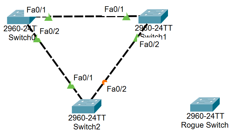 현재 STP 설정에서 Switch0이 root이고 Switch1이 Secondary 인 상황입니다.