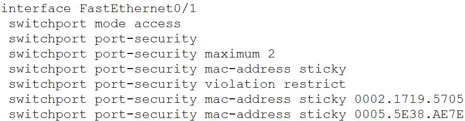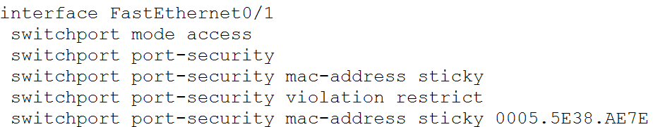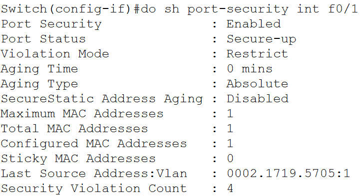 PC0의 MAC주소를 f0/1포트가 허용할 MAC주소로 주었습니다.