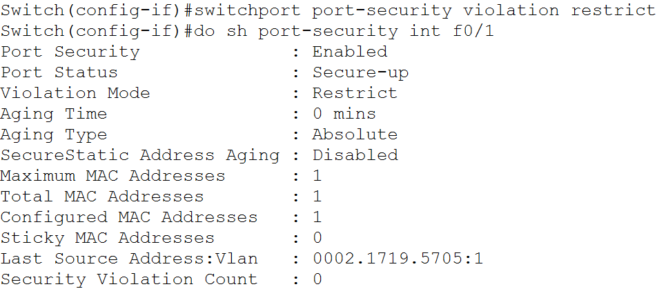 혹은 포트를 사용할 수 있는 MAC주소 개수를 설정합니다.