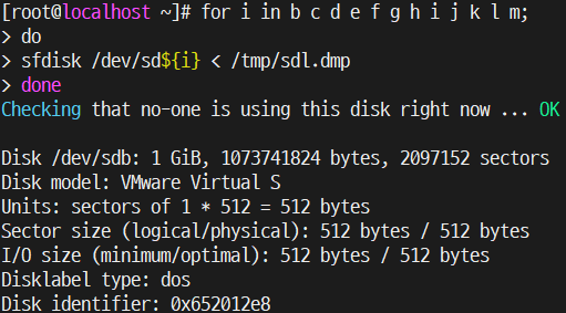 sfdisk /dev/sd${i} < /tmp/sdl.dmp