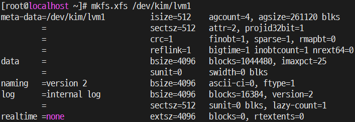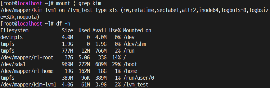 mount -t xfs /dev/kim/lvm1 /lvm_test