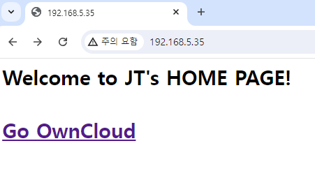 직접 작성한 초기 페이지로 접속됩니다.