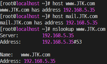 host, nslookup, dig로 도메인을 테스트할 수 있습니다.