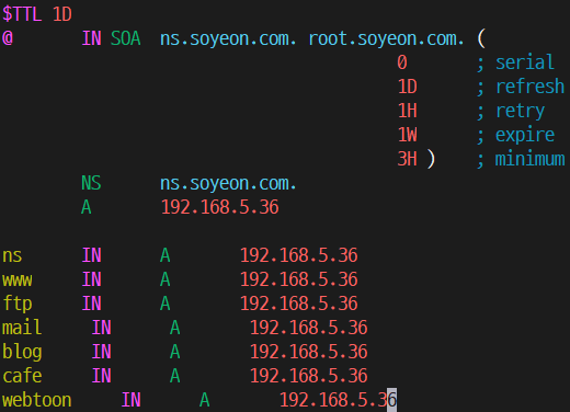 PTR : 역방향 영역 설정 (IP로 도메인을 찾음)