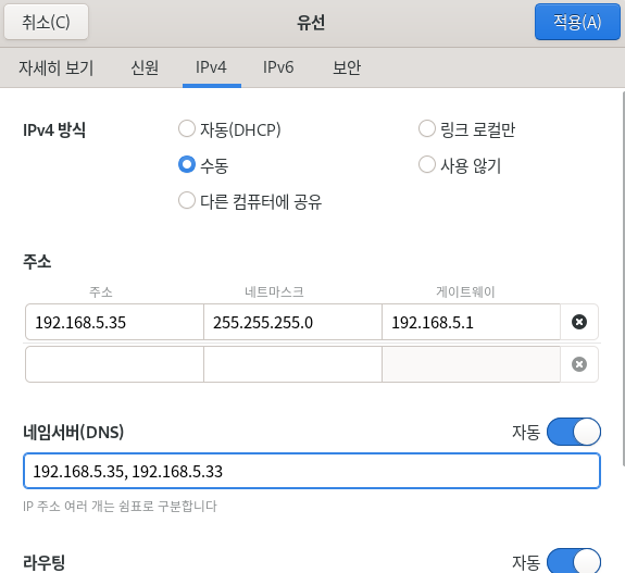 Master에게서 DNS를 받아올 것이므로 DNS설정에 상대의 IP를 추가해줍시다.
