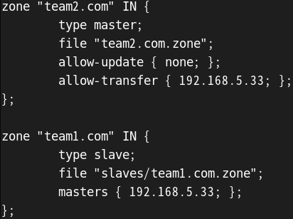 allow-transfer : 설정을 전송해줄 대상 (team1의 IP)