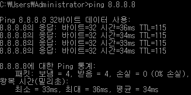 ping 명령어로 특정 IP와 통신이 잘 되는지 확인할 수 있습니다.