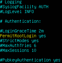 ssh로 루트 로그인을 허용하는 항목(33번째줄)을 yes로 변경후 저장(:wq)