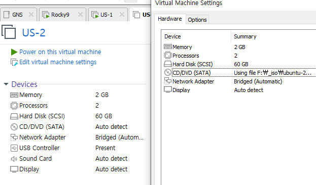 CD/DVD에 우분투 설치 iso를 마운트 해줍니다.