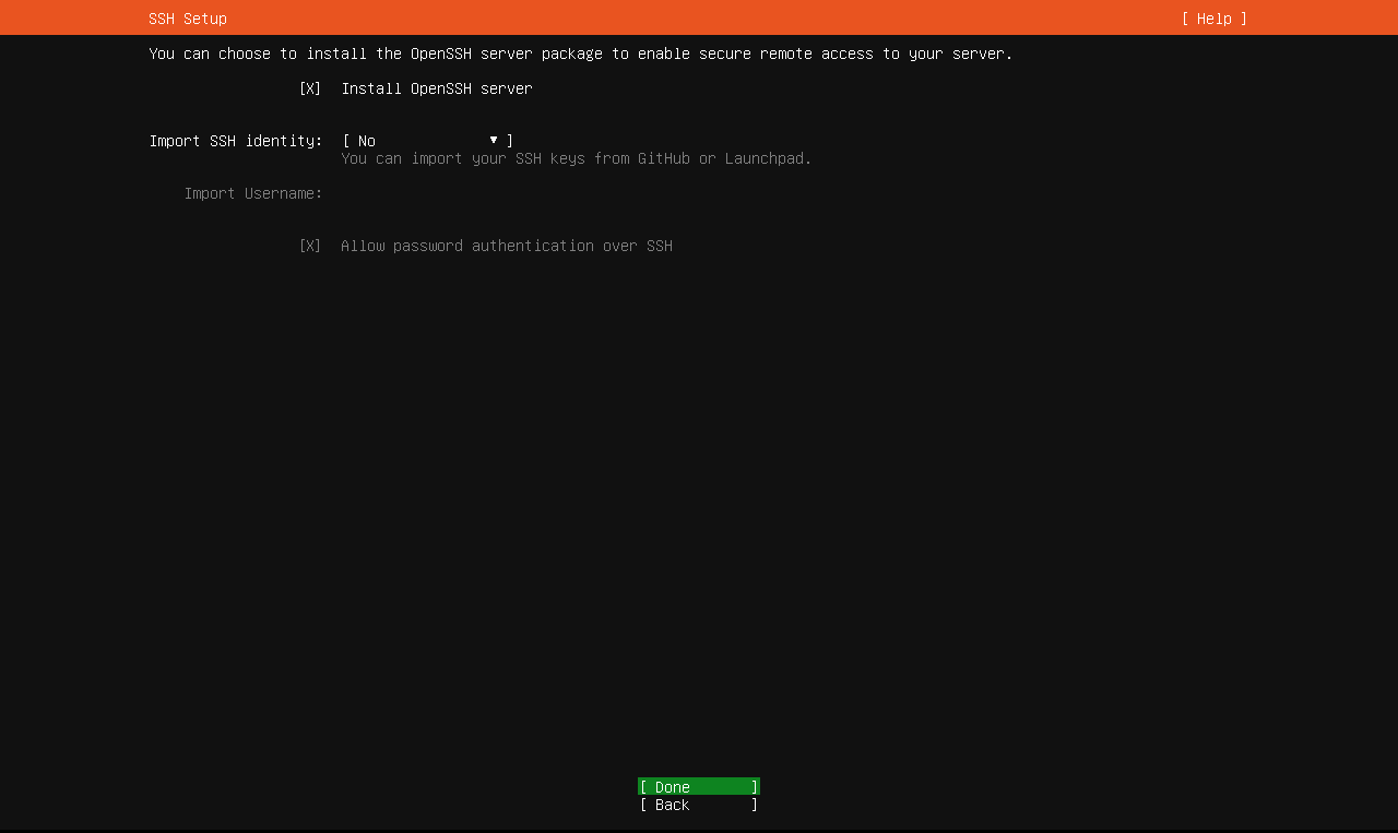SSH를 사용할 것이므로 SSH 설치에 체크