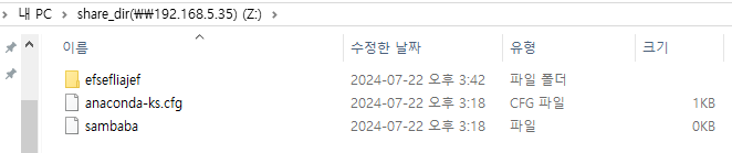 이제 공유폴더에 접속이 가능한 것을 확인할 수 있습니다.