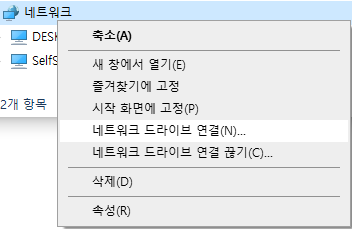 네트워크 오른쪽 클릭 -> 네트워크 드라이브 연결(N)...