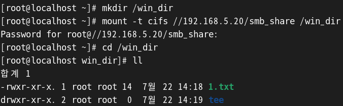 mount -t cifs //접속할주소/폴더명 /마운트포인트